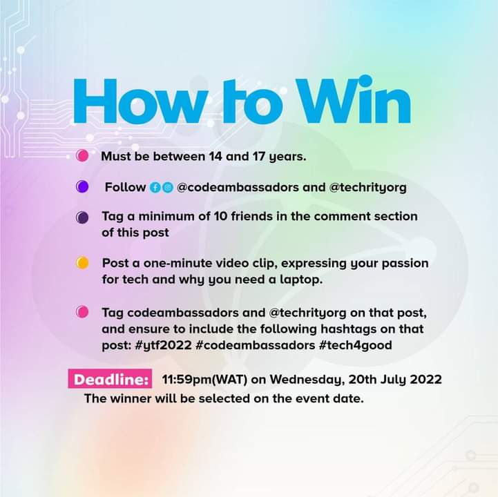 Kids can even win a laptop at the Young Techies Festival. As a participant of the young Techies Festival, you stand a chance to win a Brand New LapTop. How to win? Check the image below: