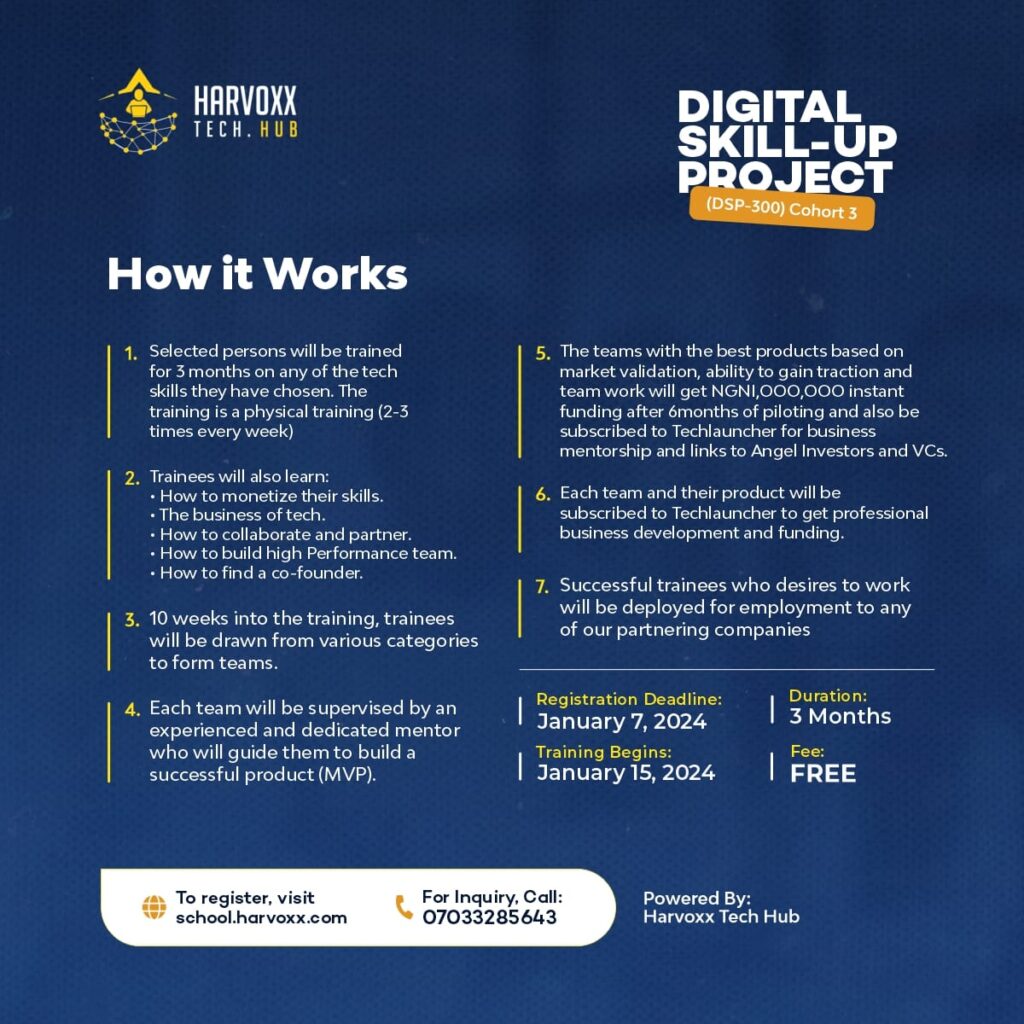 This isn’t the first time Harvoxx Tech. Hub has embarked on such a noble initiative. According to our sources, the current registration portal, which was opened on the 20th of November, 2023, marks the launch of the “third cohort of this initiative.” The program, initiated in 2021 as the DSP-300 Project, serves as a social impact initiative to address the critical issues of youth unemployment and empowerment.